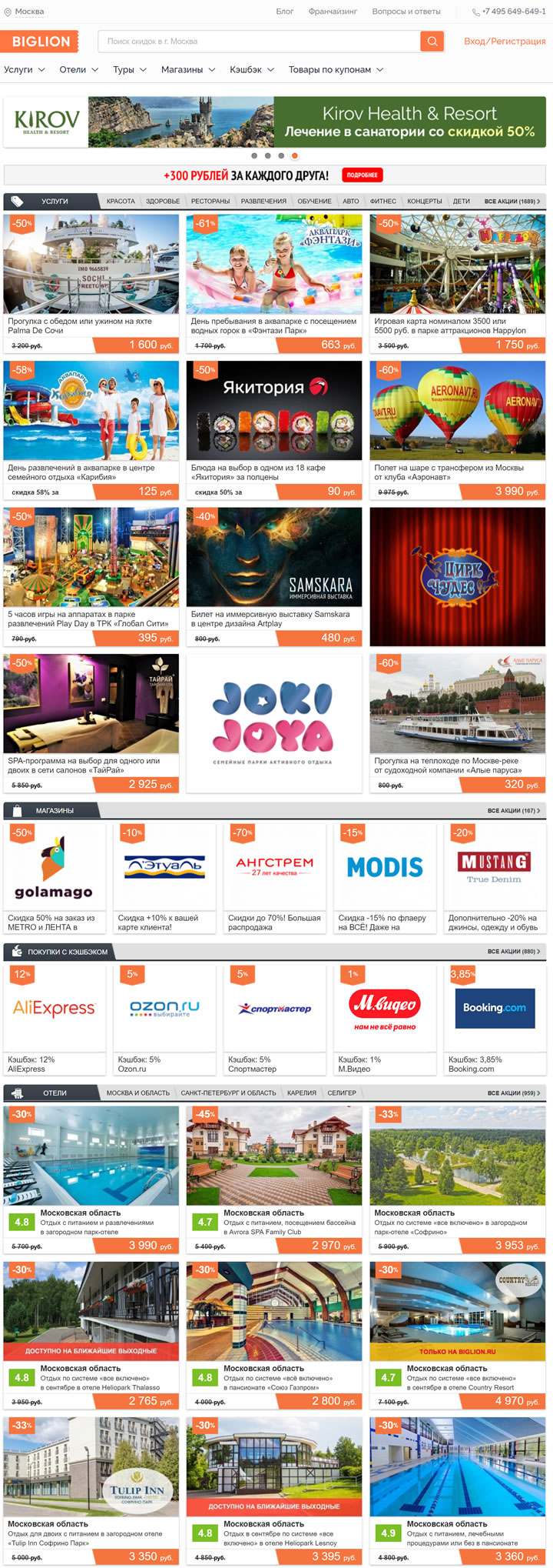 Biglion is the best discounts and promotions. Daily on the site there are special offers, under the terms of which you can buy a coupon for a discount of 50 to 90%. Every day is something new.