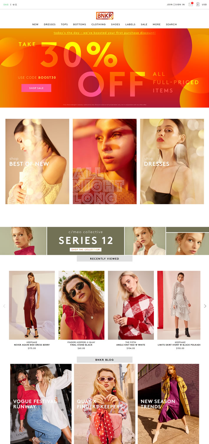 Explore Australian fashion with BNKR, the only online boutique to stock full ranges from C/MEO COLLECTIVE, Finders Keepers, Keepsake and The Fifth.