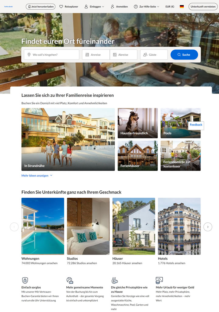 Find your ideal holiday home at FeWo-direkt, market leader in the field of holiday apartments. 2+ million holiday homes worldwide 19+ million reviews Secure online payment