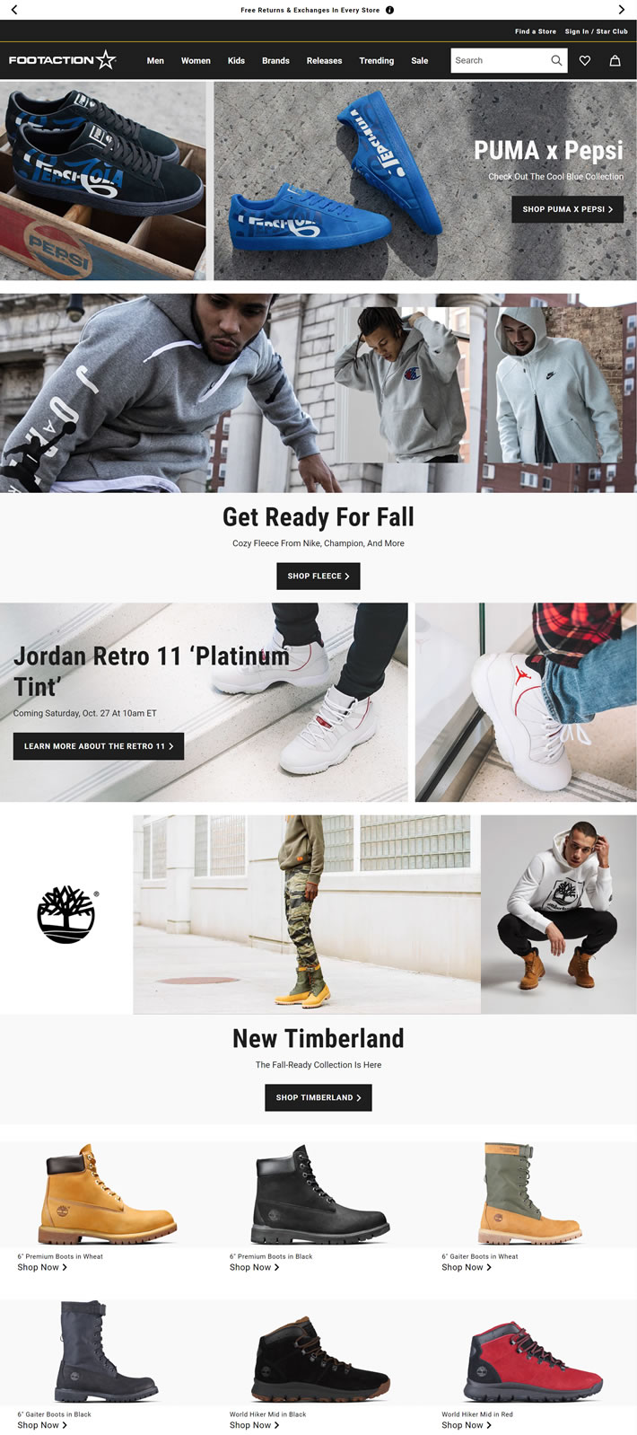 Footaction lives at the intersection of sport and style to serve those who are steps ahead of the latest trends. We offer looks that include the newest releases, exclusive apparel collections, and some of the biggest names in sportswear. Our 272 stores are located throughout the United States and Puerto Rico and focus on authentic, premium product. In addition, you can expect to find the latest styles and timeless classics from Nike, PUMA, Jordan, adidas, Levi’s, Herschel, Champion, and more.