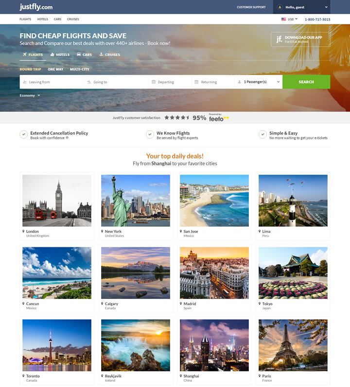 Justfly was created by a team of technological experts with many years of experience in the travel industry. We believe our platform is second to none when it comes to issuing low cost tickets efficiently in a user-friendly environment. We have partnered with over 400 airlines to deliver the best prices possible to our customers. Our team of travel agents is ready to assist you on the phone you can rest assured we’re with you every step of the way to make sure your vacation is flawless.