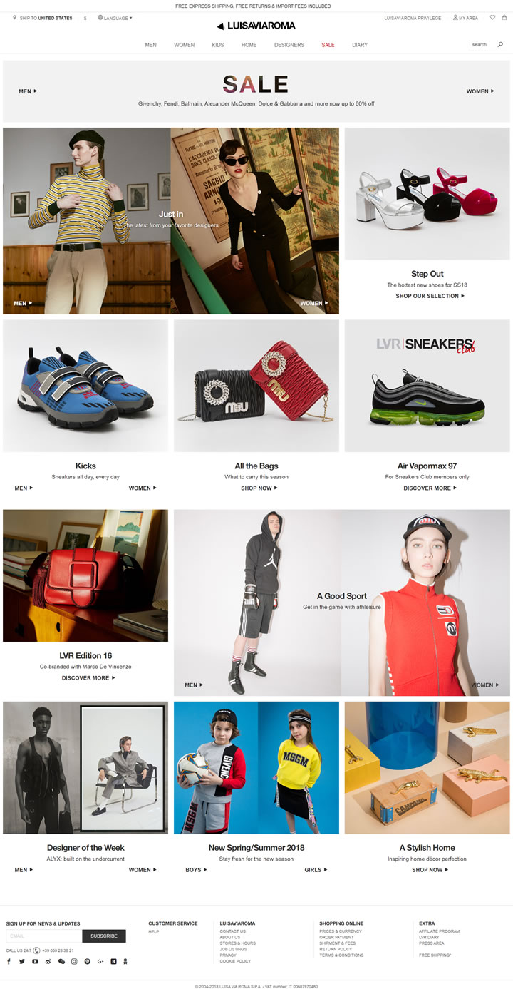 Currently approximately 300 people from 20 countries work on the website, now available in 10 languages: English, Italian, German, Chinese, Russian, Spanish, French, Korean, Japanese and Turkish. The website LUISAVIAROMA is created entirely in-house at the company’s headquarters in Florence, Italy where the graphics, design, IT, customer service, marketing and buying departments are located. PR and press offices operate from the company’s Milan office.
