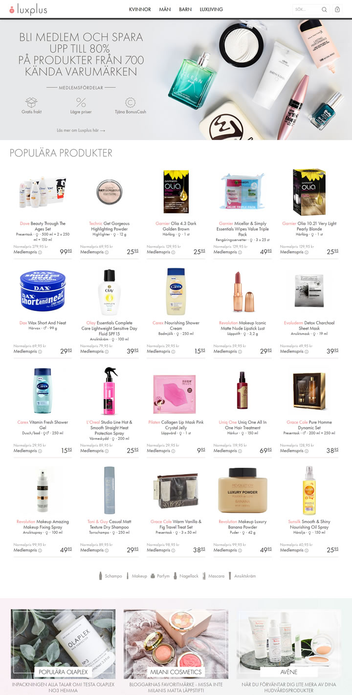 Luxplus was launched in Denmark in 2013 and has since become one of the fastest growing member clubs in Sweden, Finland and England. Luxplus has more than 7000 products and there is free shipping on all orders.