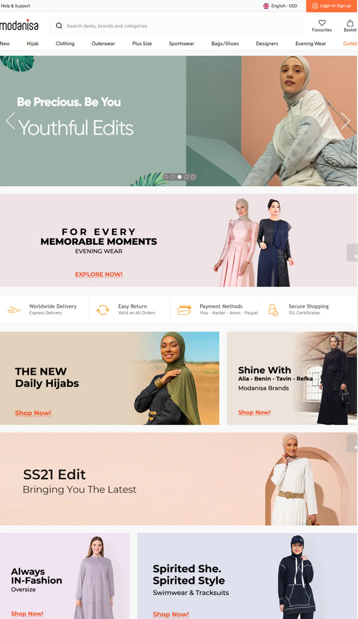 Modanisa.com launched on Mother’s Day, 2011.We were the first Turkish fashion platform to deliver online clothes shopping to our target audience in such variety. Born in Istanbul, we now have customers in 140 countries. We offer contents in 6 languages: Turkish, Arabic, English, French, German and Bahasa. We speak our customers’ language, we recognize their needs, and we know their preferences. Each month, we reach 20 million visitors from all over the world via our app and desktop platforms. We sell over 650 brands and 70 thousand products, shipping thousands of packages a day to five continents. We employ confident and youthful staff from different nationalities and cultures whose average age is 28.
