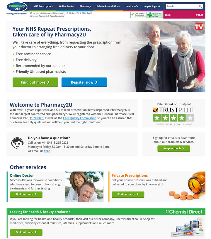 Pharmacy2U is an NHS approved online pharmacy offering repeat prescription delivery and a private online doctor service. Regulated by GPhC and the CQC.