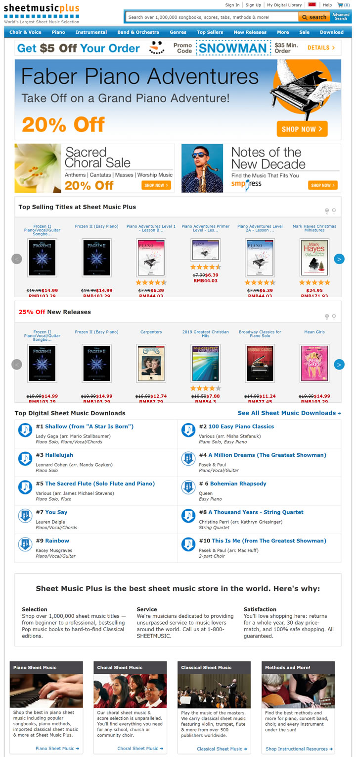 Sheet Music Plus is the world’s largest online store for sheet music, scores and online sheet music for all instruments and levels. Browse new releases, best sellers, instrument & levels! Order printed titles or download sheet music notes instantly to any device.