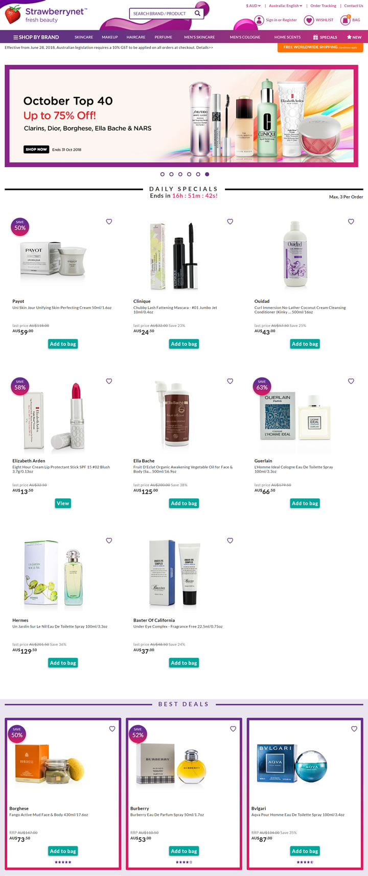 Strawberrynet is a one-stop destination for millions of beauty shoppers looking for the best deals. We offer one of the largest collections of skincare, cosmetics, haircare and fragrance in the world, with over 800 brands and 33,000 products. Our discount beauty deals allow customers in all 196 countries to access the products they want, at prices they love.